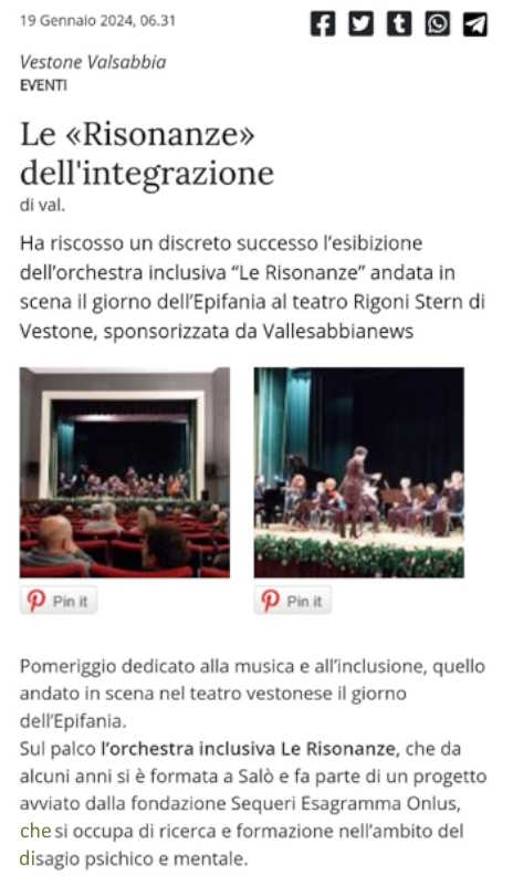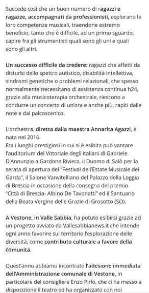 Domenica al Teatro Corallo di Villanuova sul Clisi il Concerto di Primavera dell'orchestra inclusiva, un'esperienza unica sul territorio Valsabbino